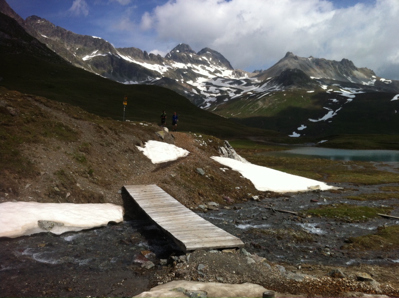 Gestern Vormittag ging es gemeinsam mit Oliver Edenhauser und Chrissi Strebinger rauf in luftige Höhen auf die Corviglia auf 2486m. Von dort aus lief ich mit Oli zum Lej Alv, da es dort auf 2525m Seehöhe die Möglichkeit gibt, auf einer Finnenbahn rund um den See zu laufen. Die circa 700m Höhenunterschied zu St. Moritz bringen für den Körper einen neuen Reiz. Dies äußert sich hauptsächlich dadurch, dass das Tempo stark reduziert werden muss, da die Luft echt schon sehr dünn ist. 😉